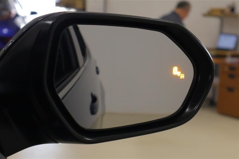 車線変更時などに、ドアミラーでは確認しにくい後側方エリア(ブラインドスポット)に存在する車両をレーダーで検知。警告サインをドアミラー等に表示することで、運転者に注意喚起する機能。