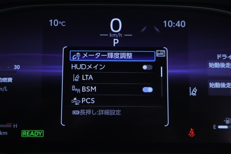 カラーヘッドアップディスプレイ付き。少ない視線移動で情報を確認できるので、運転の疲労軽減に繋がりますよ♪