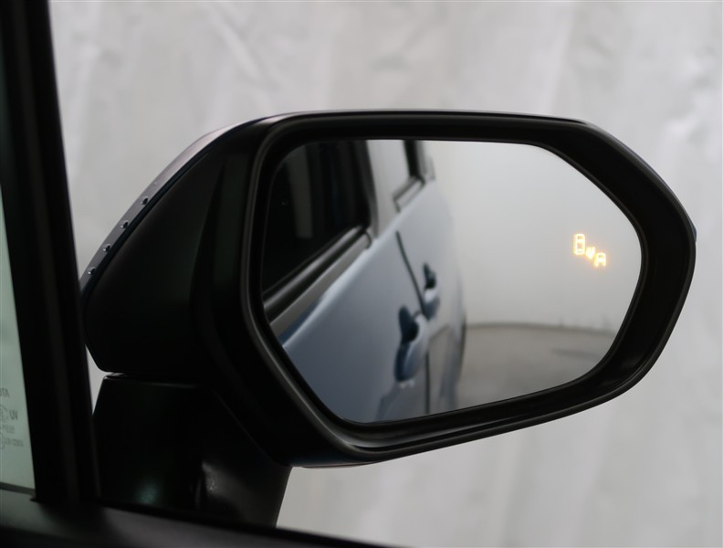 車線変更時などに、ドアミラーでは確認しにくい後側方エリア(ブラインドスポット)に存在する車両をレーダーで検知。警告サインをドアミラー等に表示することで、運転者に注意喚起する機能。