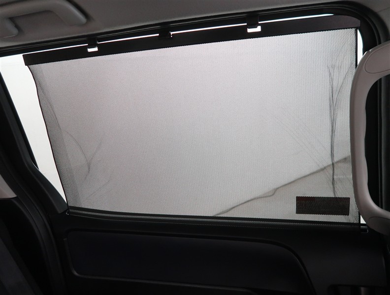 【機能】左右のスライドドアには日差し軽減効果のある収納式のサンシェードが付いています。