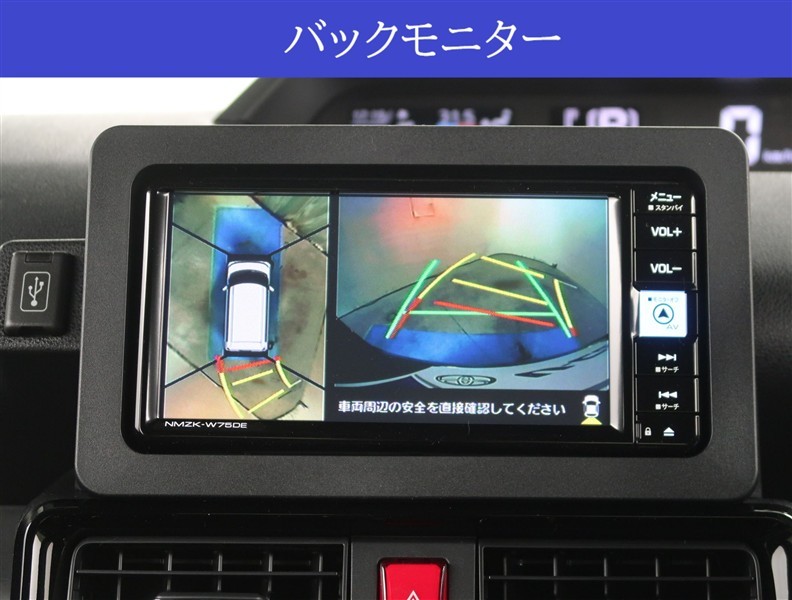 【パノラマモニター】に搭載した4つのカメラにより、車を真上から見ているような映像を表示。運転席から確認しにくい車両周囲の状況を把握できます。