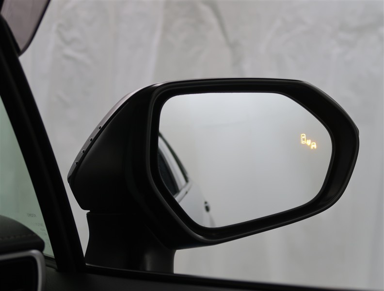 車線変更時などに、ドアミラーでは確認しにくい後側方エリア(ブラインドスポット)に存在する車両をレーダーで検知。警告サインをドアミラー等に表示することで、運転者に注意喚起する機能。