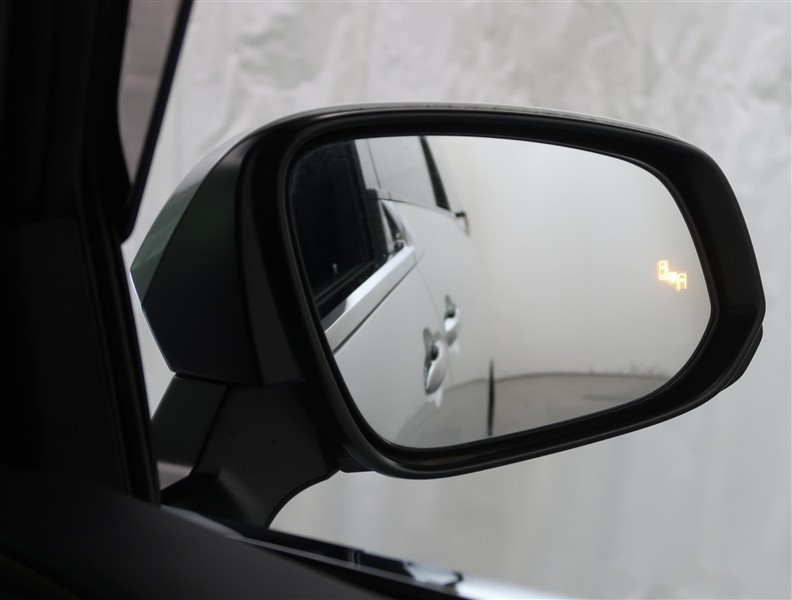 車線変更時などに、ドアミラーでは確認しにくい後側方エリア(ブラインドスポット)に存在する車両をレーダーで検知。警告サインをドアミラー等に表示することで、運転者に注意喚起する機能。