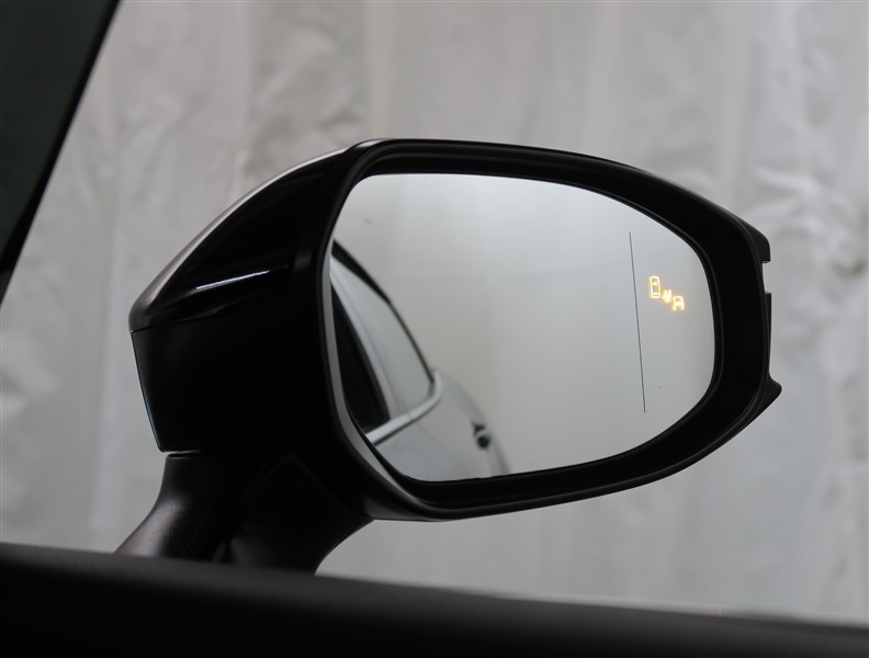 車線変更時などに、ドアミラーでは確認しにくい後側方エリア(ブラインドスポット)に存在する車両をレーダーで検知。警告サインをドアミラー等に表示することで、運転者に注意喚起する機能。