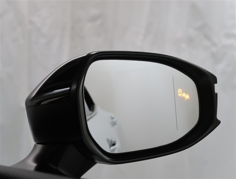 車線変更時などに、ドアミラーでは確認しにくい後側方エリア(ブラインドスポット)に存在する車両をレーダーで検知。警告サインをドアミラー等に表示することで、運転者に注意喚起する機能。