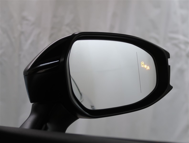 車線変更時などに、ドアミラーでは確認しにくい後側方エリア(ブラインドスポット)に存在する車両をレーダーで検知。警告サインをドアミラー等に表示することで、運転者に注意喚起する機能。