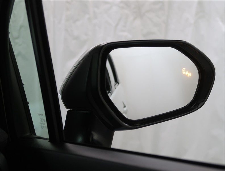 車線変更時などに、ドアミラーでは確認しにくい後側方エリア(ブラインドスポット)に存在する車両をレーダーで検知。警告サインをドアミラー等に表示することで、運転者に注意喚起する機能。