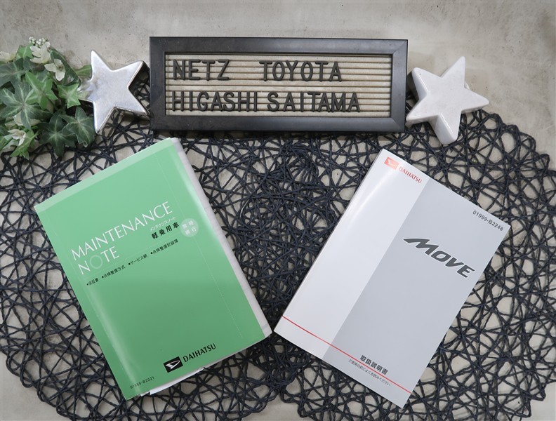 【メンテナンスノート】取り扱い説明書・メンテナンスノートもしっかり御座いますので、今までの整備歴や出所もわかります!やっぱりメンテナンスノートがあったほうがより安心ですね!
