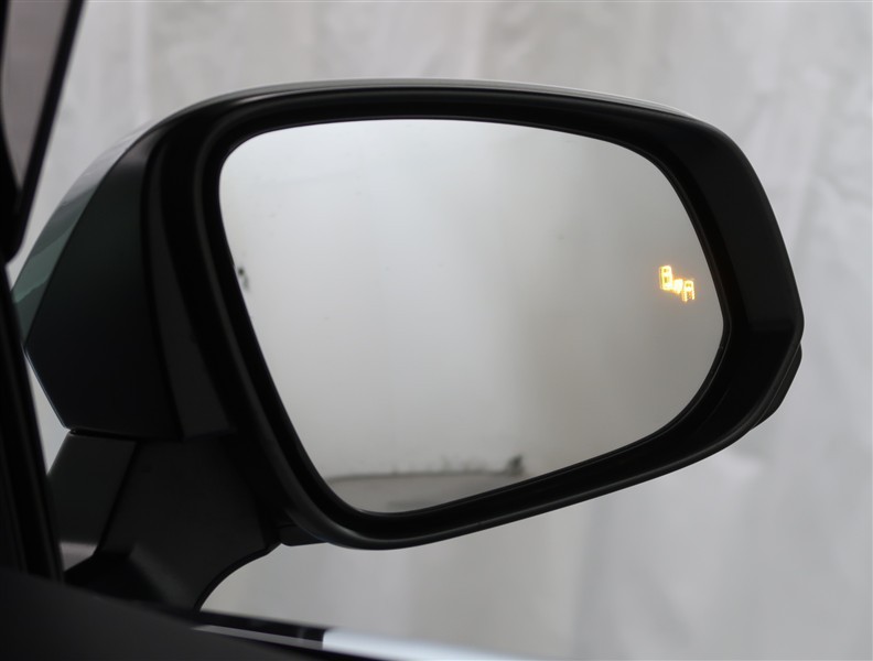 車線変更時などに、ドアミラーでは確認しにくい後側方エリア(ブラインドスポット)に存在する車両をレーダーで検知。警告サインをドアミラー等に表示することで、運転者に注意喚起する機能。