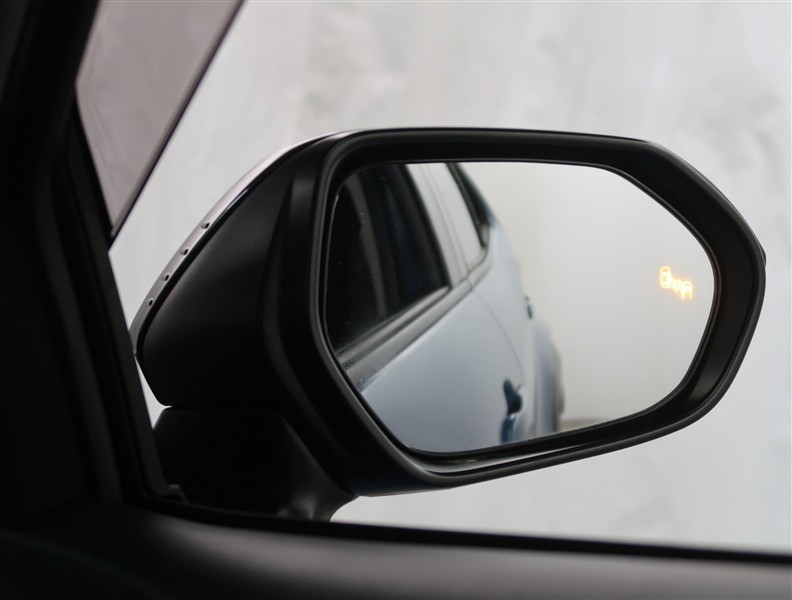 車線変更時などに、ドアミラーでは確認しにくい後側方エリア(ブラインドスポット)に存在する車両をレーダーで検知。警告サインをドアミラー等に表示することで、運転者に注意喚起する機能。