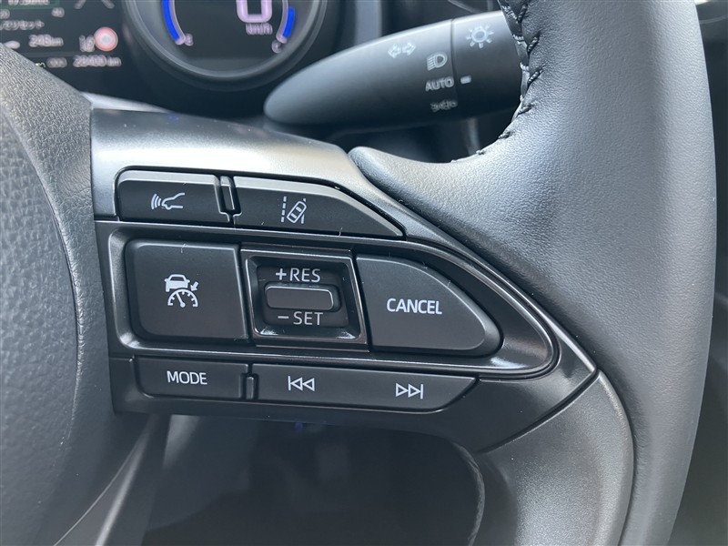レーダークルーズコントロール(全車速追従機能付)付きです。車速に応じて追従支援してくれるので、ロングドライブも快適です。詳細は販売店スタッフまでおたずねください。