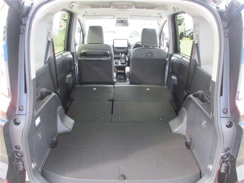 後部座席の背もたれを倒しますと、更に大きな荷物や長物を積載する事が可能です。