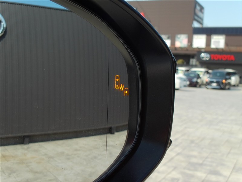 車線変更時などに、ドアミラーでは確認しにくい後側方エリア(ブラインドスポット)に存在する車両をレーダーで検知。警告サインをドアミラー等に表示することで、運転者に注意喚起する機能。
