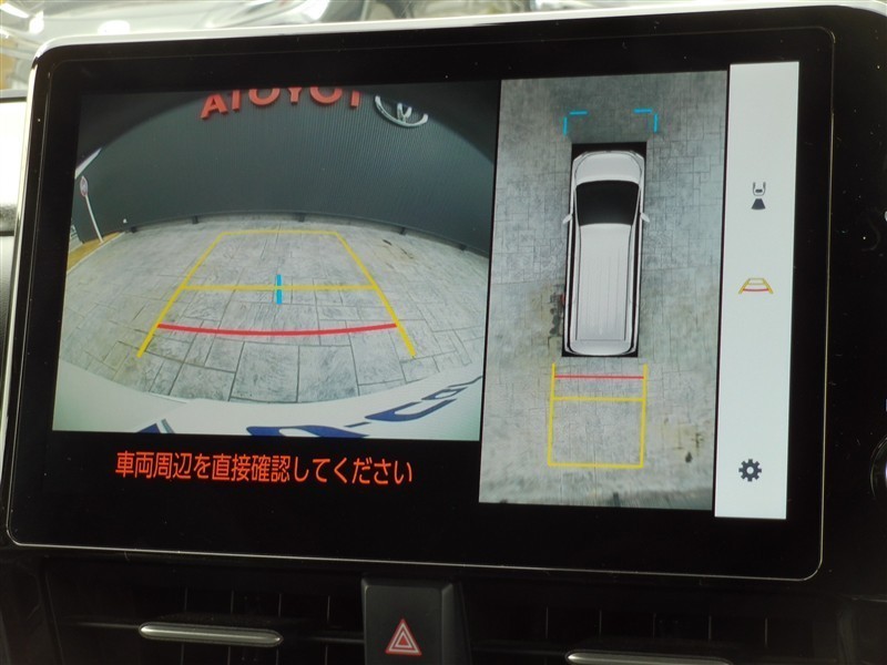 パノラミックビューモニター付きです。車両を上から見たような映像をディスプレイオーディオ画面に表示。運転席からの目視だけでは見にくい、車両周辺の状況をリアルタイムでしっかり確認できます。