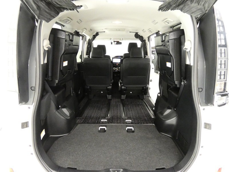 【居住性】大きな荷物を積み込む時には、3列目のシートを左右に跳ね上げ格納可能です♪カンタン操作で、奥行きの有る、広々としたラゲージ(荷物)スペースが作り出せます♪