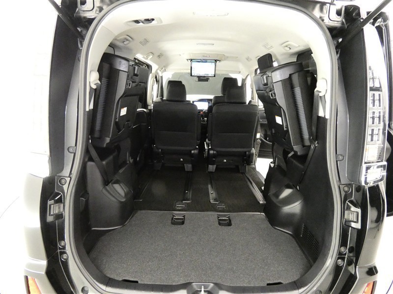 【居住性】大きな荷物を積み込む時には、3列目のシートを左右に跳ね上げ格納可能です♪カンタン操作で、奥行きの有る、広々としたラゲージ(荷物)スペースが作り出せます♪