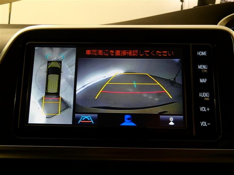 【全周囲モニター】車を上空から見下ろしたような映像をカーナビ画面に映し出し、車庫入れや縦列駐車をサポートしてくれます。