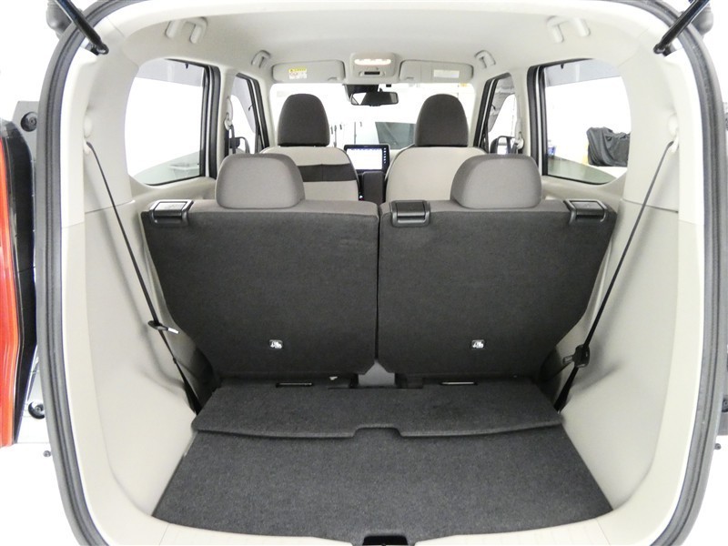 【居住性】後席シートの背もたれは、前倒し可能です♪ カンタン操作で、広々ラゲージ(荷物)スペースが出現♪これで、大きい荷物がある時でも、へっちゃらですヨv(^_^)v