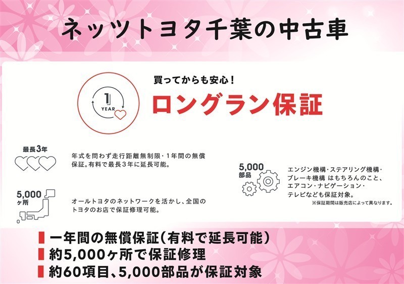 【ロングラン保証とは】最長3年!納車日から走行距離無制限&年式問わず、全国約5,000ヶ所のトヨタのお店で保証修理が可能です☆