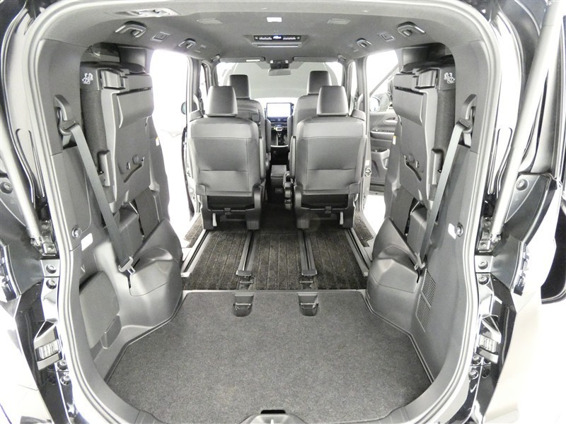 3列目シートは跳ね上げ式で折りたたみ可能です。キャンプ用品など大きな荷物もばっちり収納可能です!