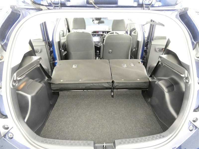 【居住性】後席シートの背もたれは、前倒し可能です♪ カンタン操作で、広々ラゲージ(荷物)スペースが出現♪これで、大きい荷物がある時でも、へっちゃらですヨv(^_^)v