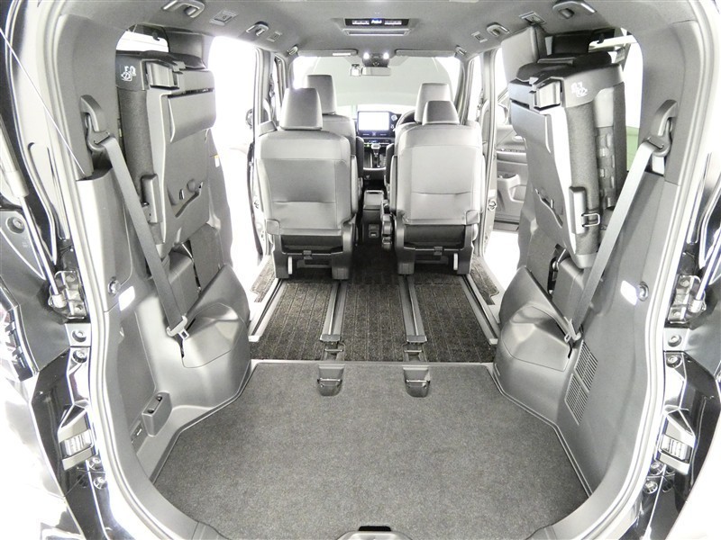 3列目シートは跳ね上げ式で折りたたみ可能です。キャンプ用品など大きな荷物もばっちり収納可能です!