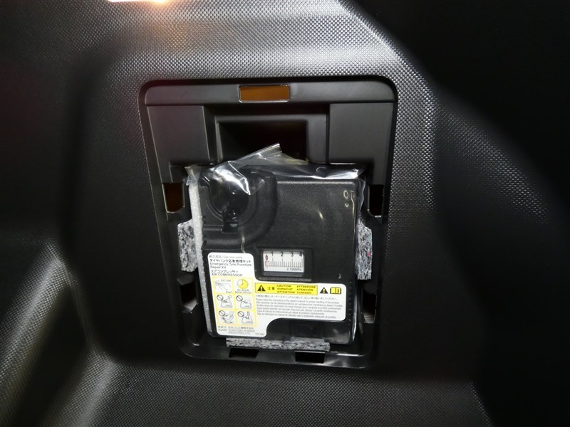 【パンク修理キット】・・・応急用タイヤに代わってパンク修理キットが装備されています。 タイヤ内部に専用修理液と空気を注入する応急処理用。(側面のパンクは非対応)