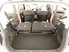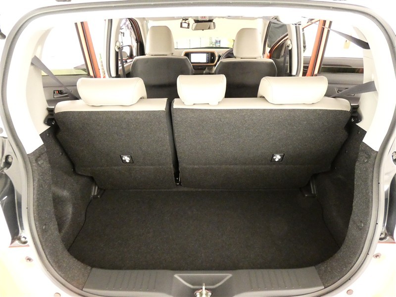 【シートアレンジ】リヤのシートは分割式で倒れます。全部が倒れないので必要な容量分だけ荷室を拡張できますよ。