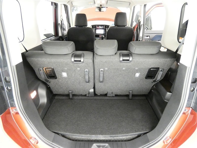 【居住性】後席シートの背もたれは、前倒し可能です♪ カンタン操作で、広々ラゲージ(荷物)スペースが出現♪これで、大きい荷物がある時でも、へっちゃらですヨv(^_^)v