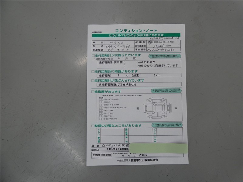 【コンディションシート】右後ろドアを交換した跡が見受けられます。※修復車には該当しません。
