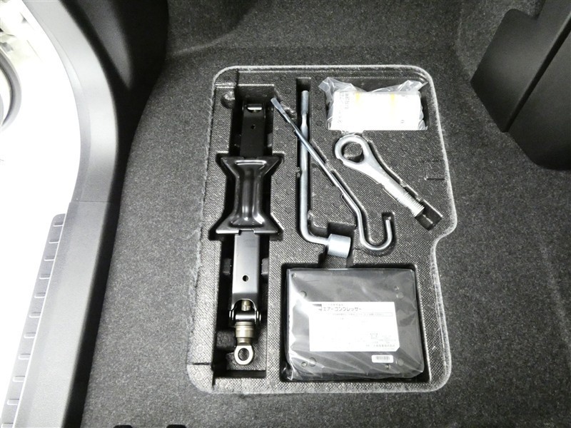 【パンク修理キット】・・・応急用タイヤに代わってパンク修理キットが装備されています。 タイヤ内部に専用修理液と空気を注入する応急処理用。(側面のパンクは非対応)