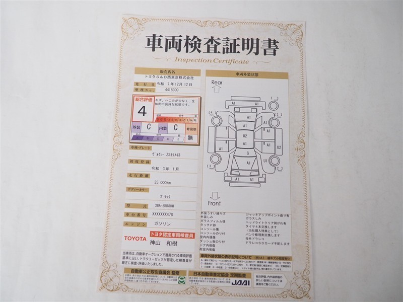 トヨタ認定車両検査員の目で厳しくチェック。わずかな傷も車両検査証明書にてお見せしています。