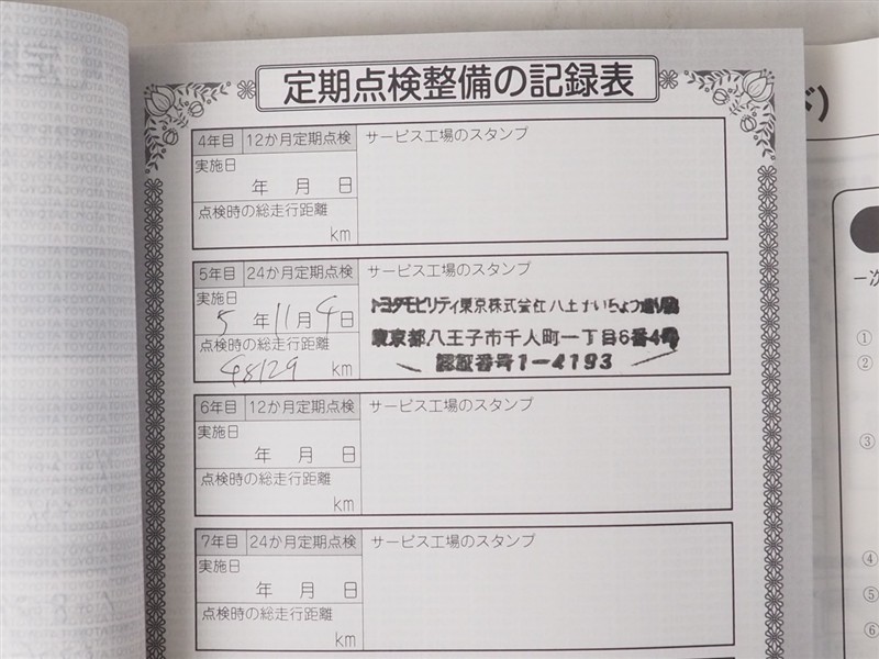 ※ 「定期点検整備なし(要整備箇所あり)」の場合、整備箇所につきましては、販売店へお問い合わせください。