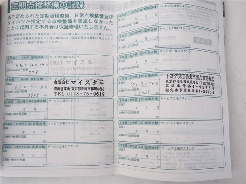※ 「定期点検整備なし(要整備箇所あり)」の場合、整備箇所につきましては、販売店へお問い合わせください。