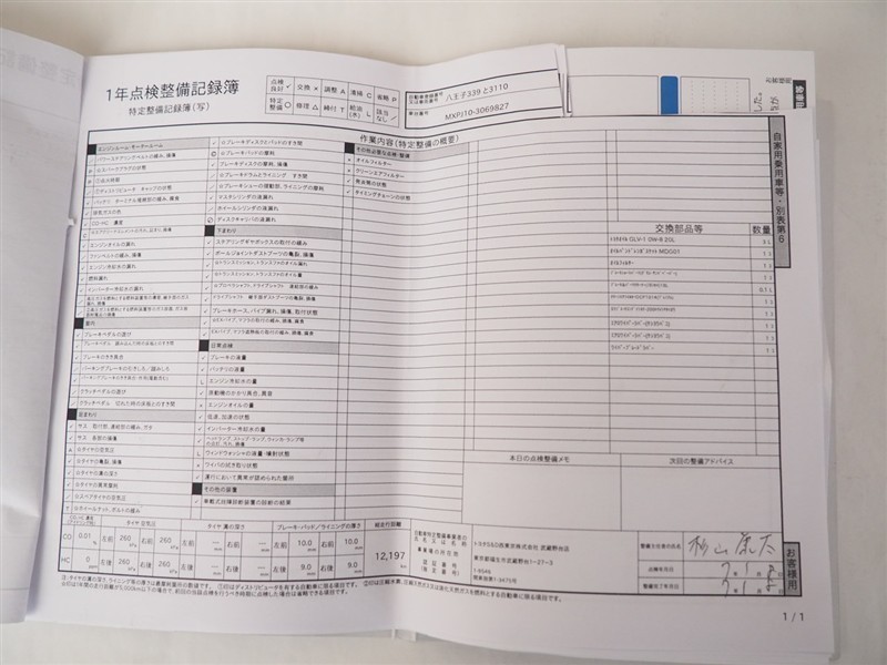 メンテナンスノート付きです。過去の整備記録を確認したり、お車の状況にあった整備をすることに役立ちます。