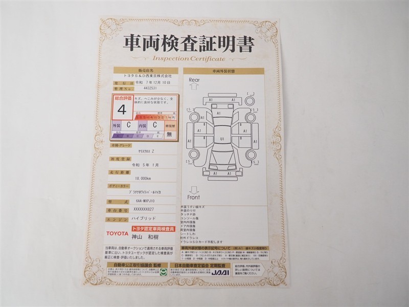 お車の状態がわかる車両検査証明書付