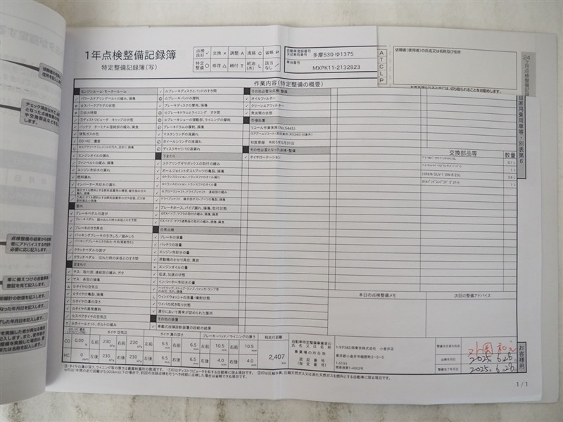 メンテナンスノート付きです。過去の整備記録を確認したり、お車の状況にあった整備をすることに役立ちます。