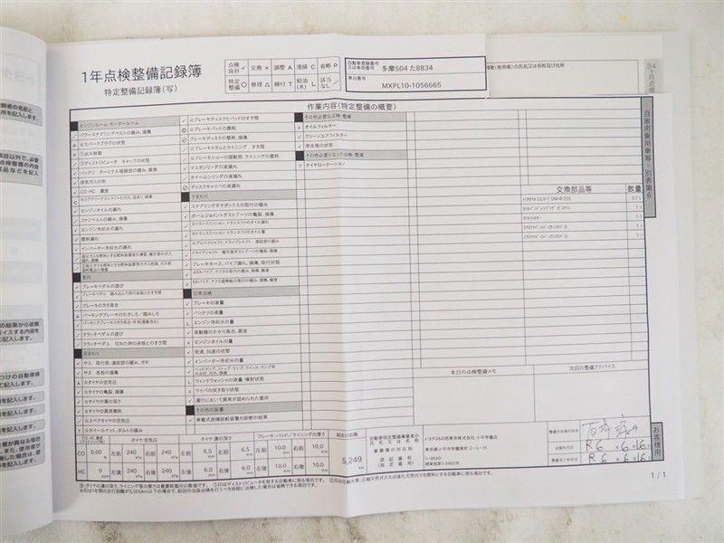 メンテナンスノート付きです。過去の整備記録を確認したり、お車の状況にあった整備をすることに役立ちます。