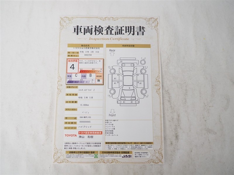 車両検査証明書で傷やへこみの確認が可能です。