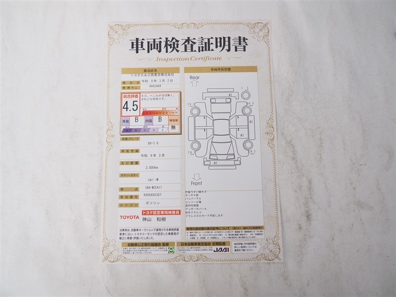 車両検査証明書付きです!だれでも中古車の状態がすぐにわかるよう、車のプロが客観的に評価。車両の状態やわずかなキズも正確にお伝えします。