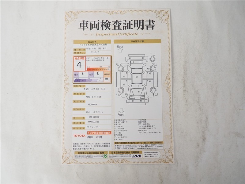 トヨタ認定車両検査員の目で厳しくチェック。わずかな傷も車両検査証明書にてお見せしています。
