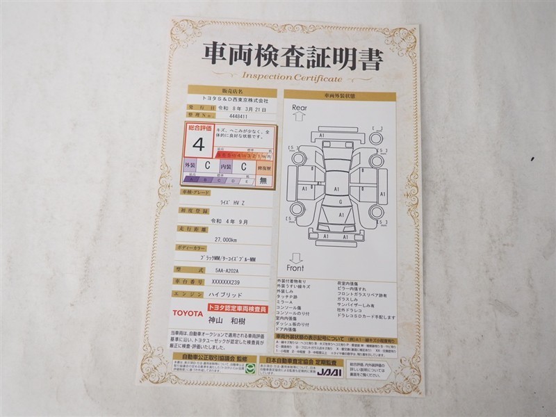 車両検査証明書付きです!だれでも中古車の状態がすぐにわかるよう、車のプロが客観的に評価。車両の状態やわずかなキズも正確にお伝えします。