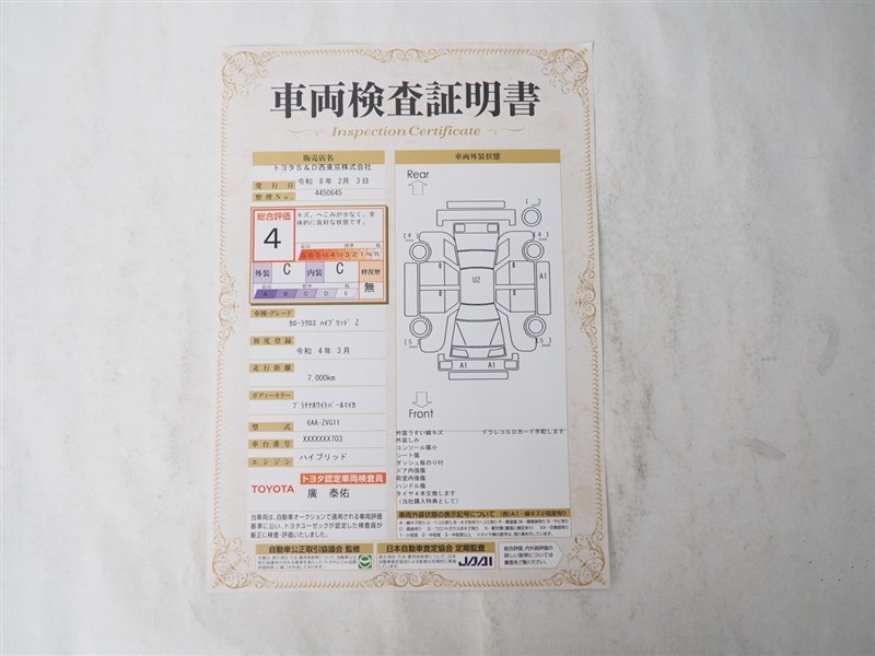 ※ 「修復歴あり」の場合、修復部位の詳細につきましては、販売店へお問い合わせください。