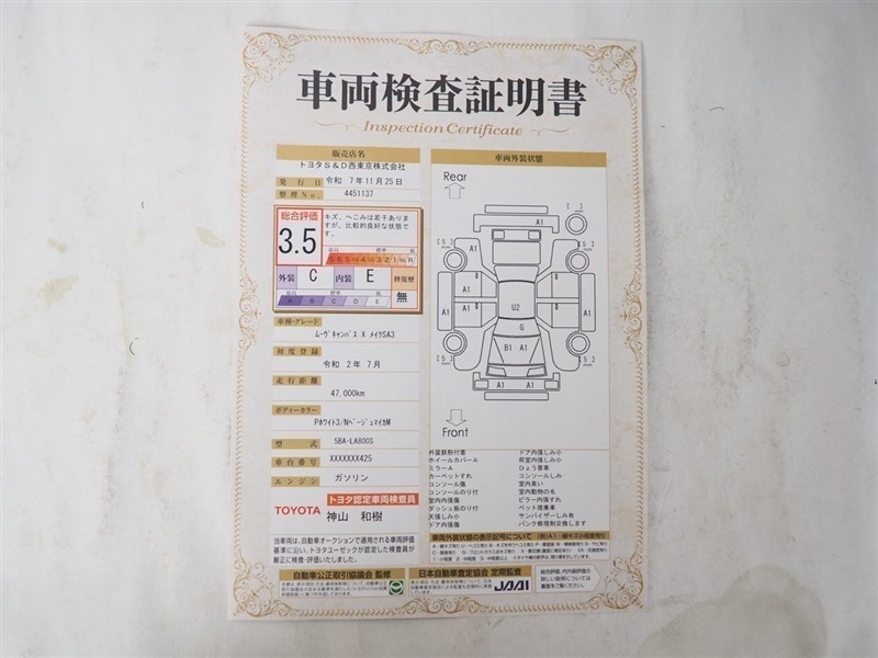 ※ 「定期点検整備なし(要整備箇所あり)」の場合、整備箇所につきましては、販売店へお問い合わせください。