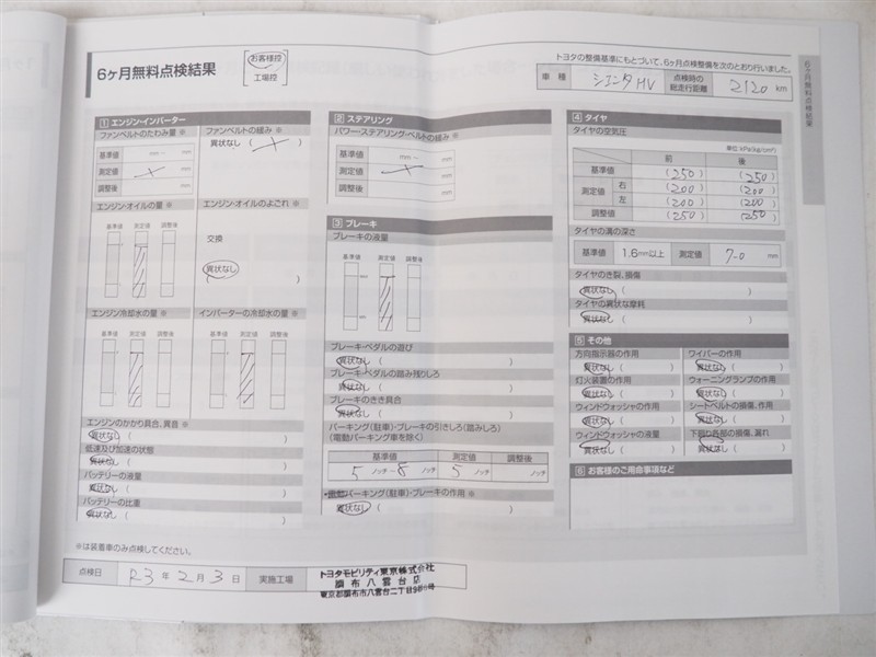※ 「定期点検整備なし(要整備箇所あり)」の場合、整備箇所につきましては、販売店へお問い合わせください。