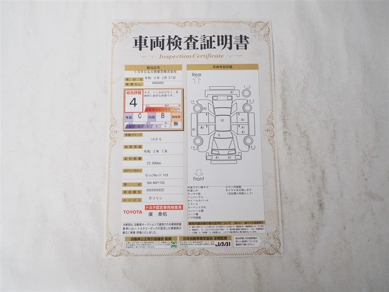 車両検査証明書付きです!だれでも中古車の状態がすぐにわかるよう、車のプロが客観的に評価。車両の状態やわずかなキズも正確にお伝えします。