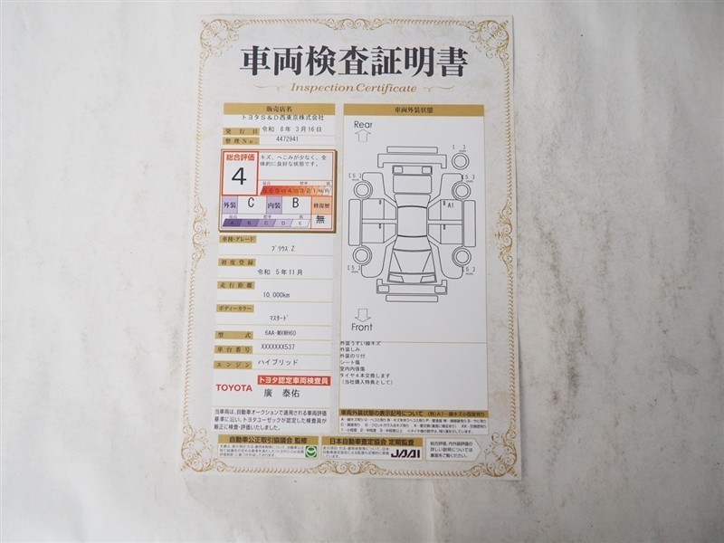 車両検査証明書付きです!だれでも中古車の状態がすぐにわかるよう、車のプロが客観的に評価。車両の状態やわずかなキズも正確にお伝えします。