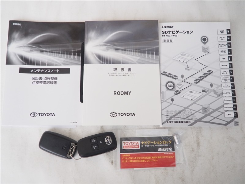 取扱説明書、メンテナンスノート、スペアキー、しっかり揃っています。(スマートキー2本、ナビゲーションロックボルト)