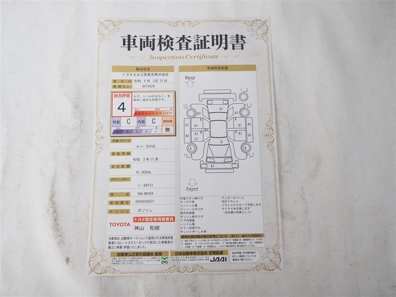 車両検査証明書付きです!だれでも中古車の状態がすぐにわかるよう、車のプロが客観的に評価。車両の状態やわずかなキズも正確にお伝えします。
