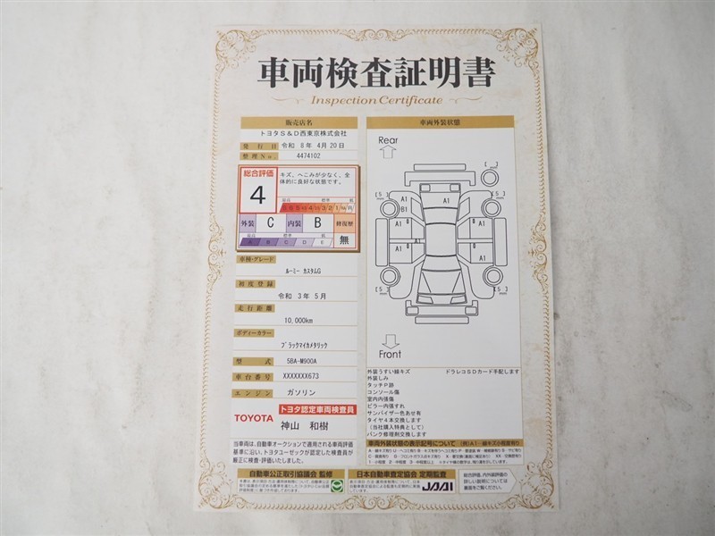 車両検査証明書です。 車両の状態もチェック済なので安心!